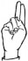 На ћирилици написано ВОЈИСЛАВ ЧЕШЉАРАЦ састоји се из 16 слова [?]. Исписано ћириличном једноручном азбуком за глувонеме: